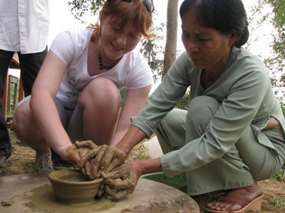 08h00: HDV đón khách tại khách sạn, booking trong khu vực Trung tâm TP Hội An. Đưa đến bến thuyền Bạch Đằng để lên thuyền bắt đầu tour du lịch ven sông. Ghé tham quan làng nghề truyền thống – Làng Mộc Kim Bồng hoặc Làng Gốm Thanh Hà được ra đời từ hàng trăm năm trước.